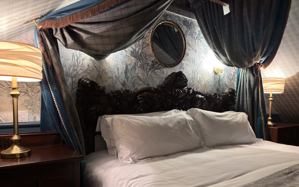 Perched within the estate’s turret, this suite embodies the mystery and allure of the kelpie, a mythical water spirit known for its grace and captivating nature.