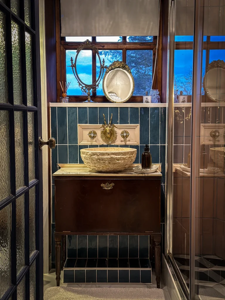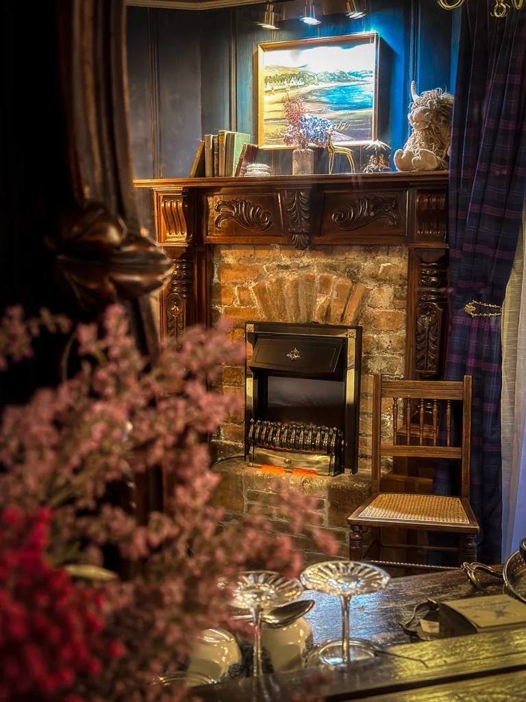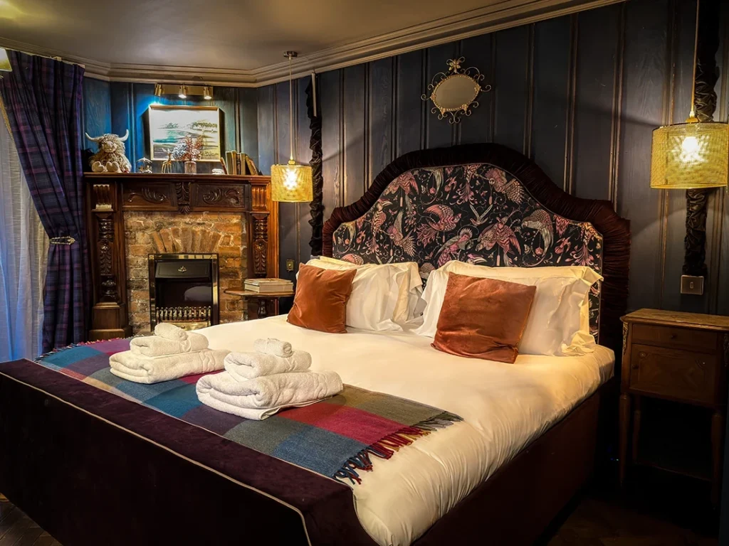 Featuring a king-size beds with ensuite bathrooms, a cozy electric fireplace, the Faerie Veil Hideaway invites guests to indulge in modern comforts while enjoying a unique connection to Scotland’s mythic lore.