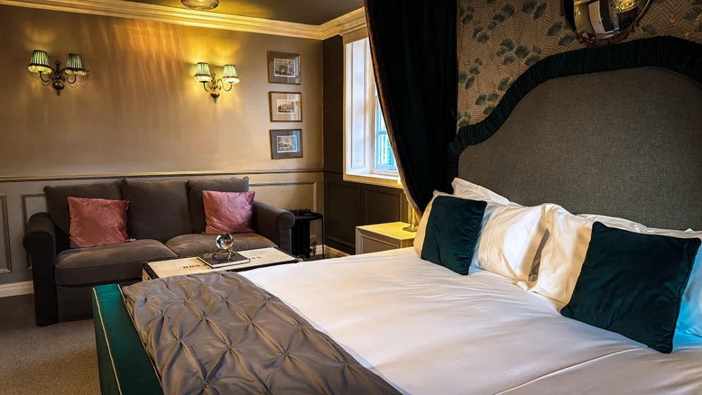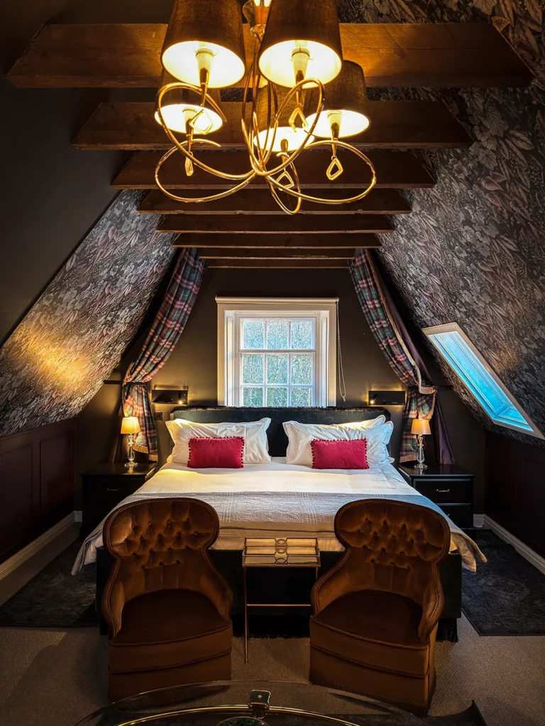 Perched within the estate’s turret, this suite embodies the mystery and allure of the kelpie, a mythical water spirit known for its grace and captivating nature.