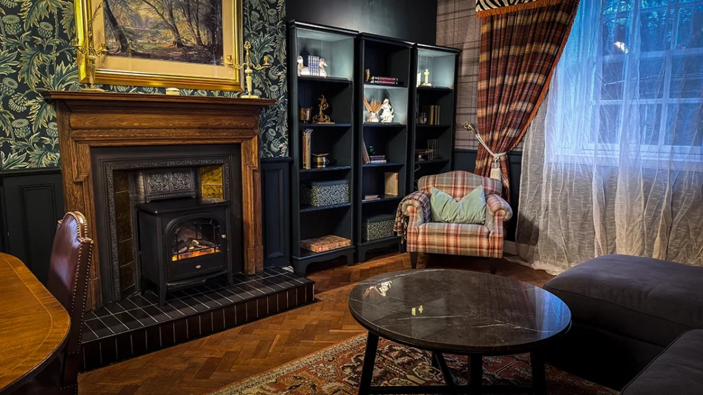 Featuring a two king-size beds with ensuite bathrooms, a cozy electric fireplace, the Morrigan Wing invites guests to indulge in modern comforts while enjoying a unique connection to Scotland’s mythic lore.